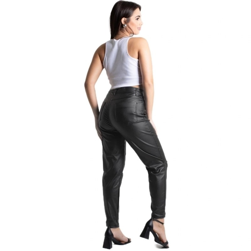The Sawary Jeans Women’s Coated High-Waisted Comfort Pants in Black combine sophisticated style with all-day comfort. Designed with a high waist and a relaxed fit around the hips and thighs, these pants gently taper down to the ankle, creating a flattering and modern silhouette.Crafted from a premium fabric blend (76% cotton, 21% polyester, 3% linen), these pants offer breathability, durability, and a touch of stretch for maximum comfort. The coated finish adds a subtle shine and unique texture, giving them a contemporary, fashion-forward appeal.Featuring a button and zipper closure, as well as functional front and back pockets, these pants are both practical and stylish. Versatile Styling:Casual Look: Pair them with a basic t-shirt and sneakers for an effortlessly cool, laid-back outfit.Sophisticated Look: Elevate your style with a chic blouse and heels, perfect for occasions that call for a refined touch.Accessorize Smartly: Add minimalist accessories to enhance the natural sheen of the fabric without overpowering the look.