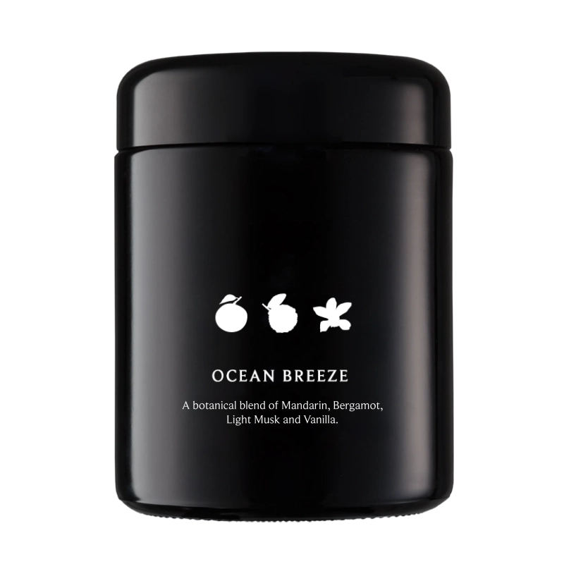 A hand-poured Ocean Breeze candle that evokes a refreshing summer getaway with vibrant notes of mandarin, bergamot, light musk, and vanilla. Crafted in a violet Miron glass jar using traditional alchemy techniques to preserve the natural aroma and benefits for a long-lasting sensory experience. Fragrance Notes: • Top: Lime, Mandarin, Bergamot • Middle: Coconut Milk • Bottom: Light Musk, Vanilla Key Benefits: • Fresh & Invigorating: Brings the uplifting scent of summer into your space. • Long-Lasting Burn: Provides up to 60 hours of aromatic enjoyment. • Handcrafted Quality: Each candle is hand-poured with coconut oil into Miron glass jars. • Preserves Natural Essence: Ancient method retains natural scent and properties. Ingredients: • Lime • Mandarin • Bergamot • Coconut Milk • Light Musk • Vanilla Specifications: • Weight: 16 oz • Burning Time: 60 hours Dimensions: • Height: 9.1 cm ± 0.1 • Diameter: 7.4 cm +1.2 / -0.8
